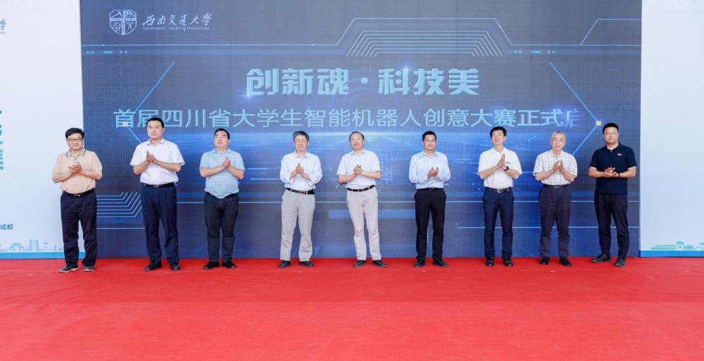 最后,高波副处长、康国政副校长共同为四川省大学生智能机器人创意大赛组委会单位颁发证书。与会代表上台见证首届四川省大学生智能机器人创意大赛正式开幕。