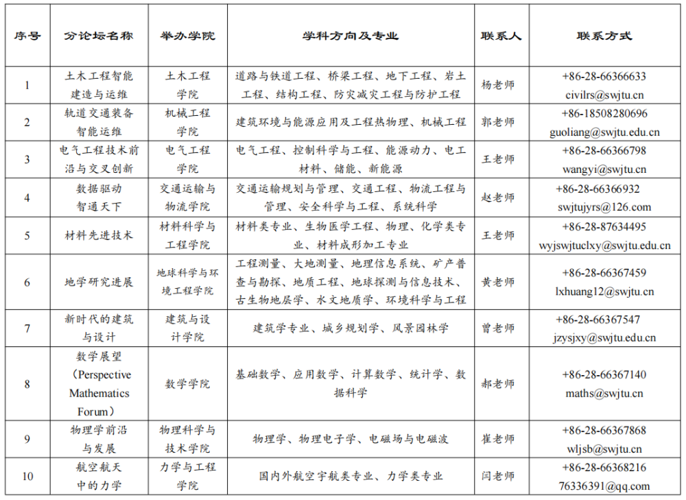 分论坛具体信息及联系方式