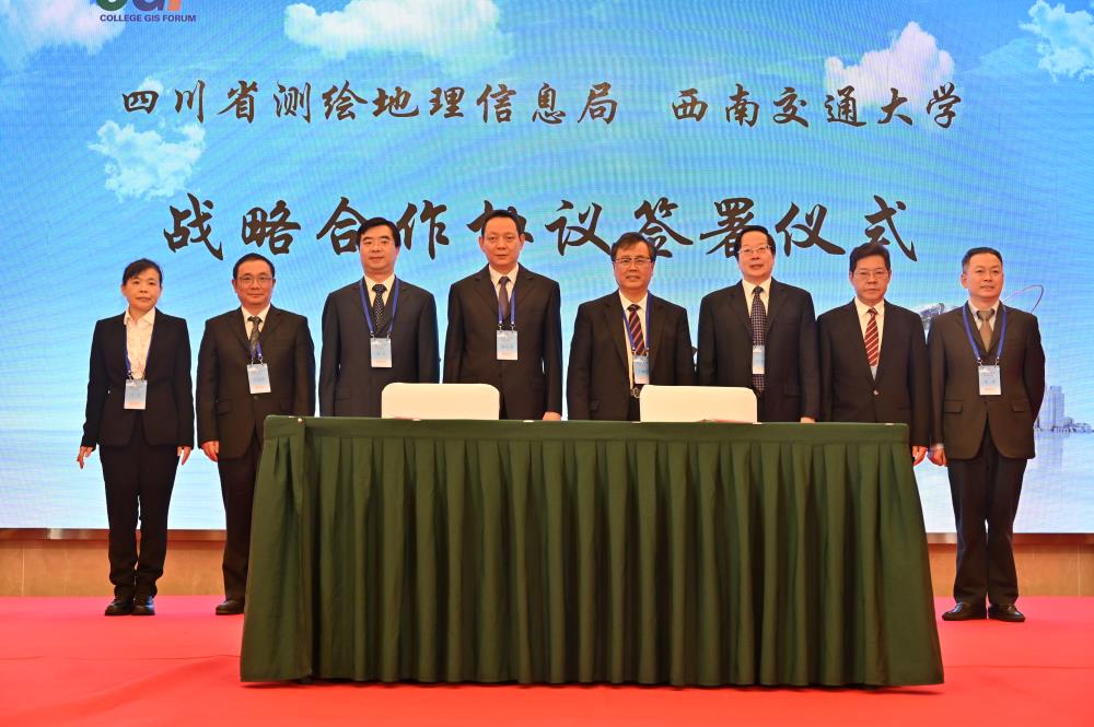 党委常委、副校长沈火明代表学校同四川省测绘地理信息局代表刘宇副局长签署战略合作协议。四川省测绘地理信息局局长党组书记杨宏山、李见阳处长、王芳处长,Meehutao
