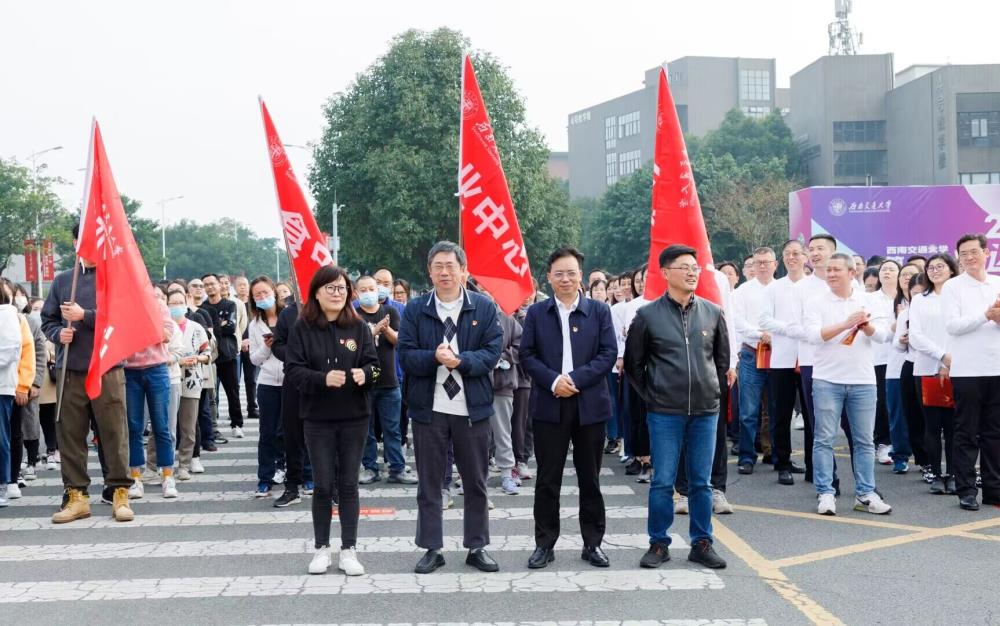 11月10日下午,为深入学习贯彻党的二十大精神,进一步推动落实学校第十五次党代会任务。由机关党委和后勤与基建管理处党委联合举办的“踔厉奋发谋复兴 笃行不怠启征程——经典诵读+红色微马”主题党日活动在犀浦校区顺利开展,该活动为2022年学校工会品牌活动立项建设项目。校党委副书记、纪委书记张学龙,党委常委、副校长康国政,党委常委、副校长刘长军和党委常委、宣传部部长卢世炬出席此次活动,校机关,后勤与基建管理处及各服务中心党员、职工500余人齐聚在升旗台广场,重温初心使命。机关党委书记贺平主持活动。