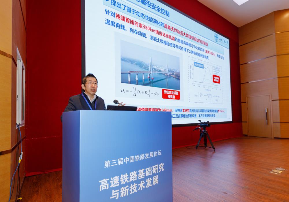 18日,由西南交大主办的中国铁路发展论坛围绕“青年科技发展论坛——高速铁路基础研究”展开讨论。胡所亭主任做了题为“国家铁路列车荷载标准研究与应用”的报告。他从国家铁路列车荷载标准研究的最新研究进展、研究应用情况、未来发展趋势等方面,进行深入的讲解。蔡小培教授就“基础变形区高速铁路无砟轨道力学性能与车辆动力响应”一题,结合研究成果背景,对路基不均匀沉降区无砟道床损伤及动力响应、路基冻胀对无砟轨道静动态力学特性的影响、过渡段冻胀变形对无砟轨道与列车的影响等专业问题,分享了自己的研究成果。王中钢教授围绕“轨道车辆复合材料结构的抗冲击问题探讨”,从需求、工作和思考三个方面进行了报告。