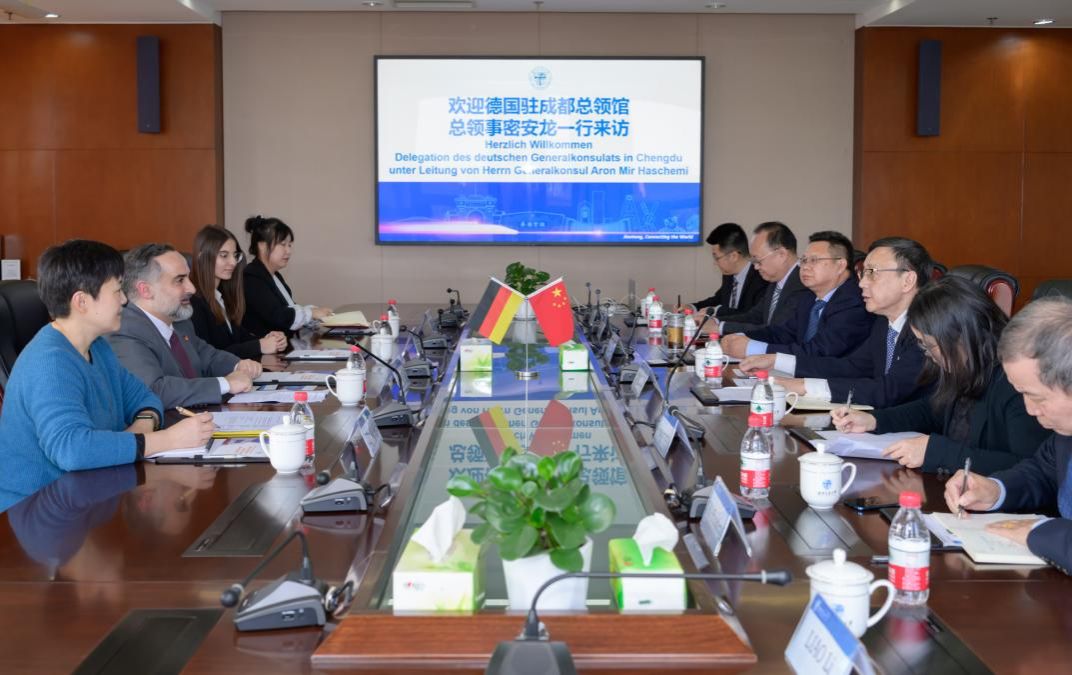 姚发明谈到,学校高度重视与德国的交流合作,三年疫情之后,学校组织的第一个校领导出访欧洲团组就访问了德国,目前正在积极推进与德国多所高校的深入合作,相信今天密安龙总领事一行来访,一定会开启西南交大与德国高校和科研机构合作交流的新篇章。