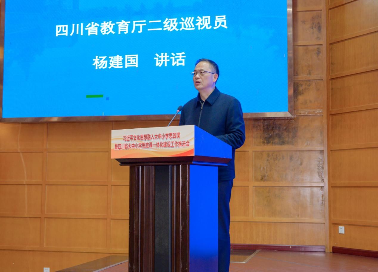 杨建国对学校的辛勤付出表示感谢。他强调,各地各校要进一步提高政治站位,强化使命担当,通过深入学习领会习近平文化思想,推动这一思想有机融入大中小学思政课,用党的创新理论成果武装学生头脑。他指出,组建22个省级大中小学思政课一体化共同体、84个省级大中小学思想政治教育一体化实践基地,目的就是以更实举措、更强合力推进一体化建设走深走实。要进一步深化改革创新,强化质量提升,充分运用四川的文化资源优势,特别是将红色文化资源融入思政课程,搞好培根铸魂,把青年学生培育成为堪当民族大任的时代新人。