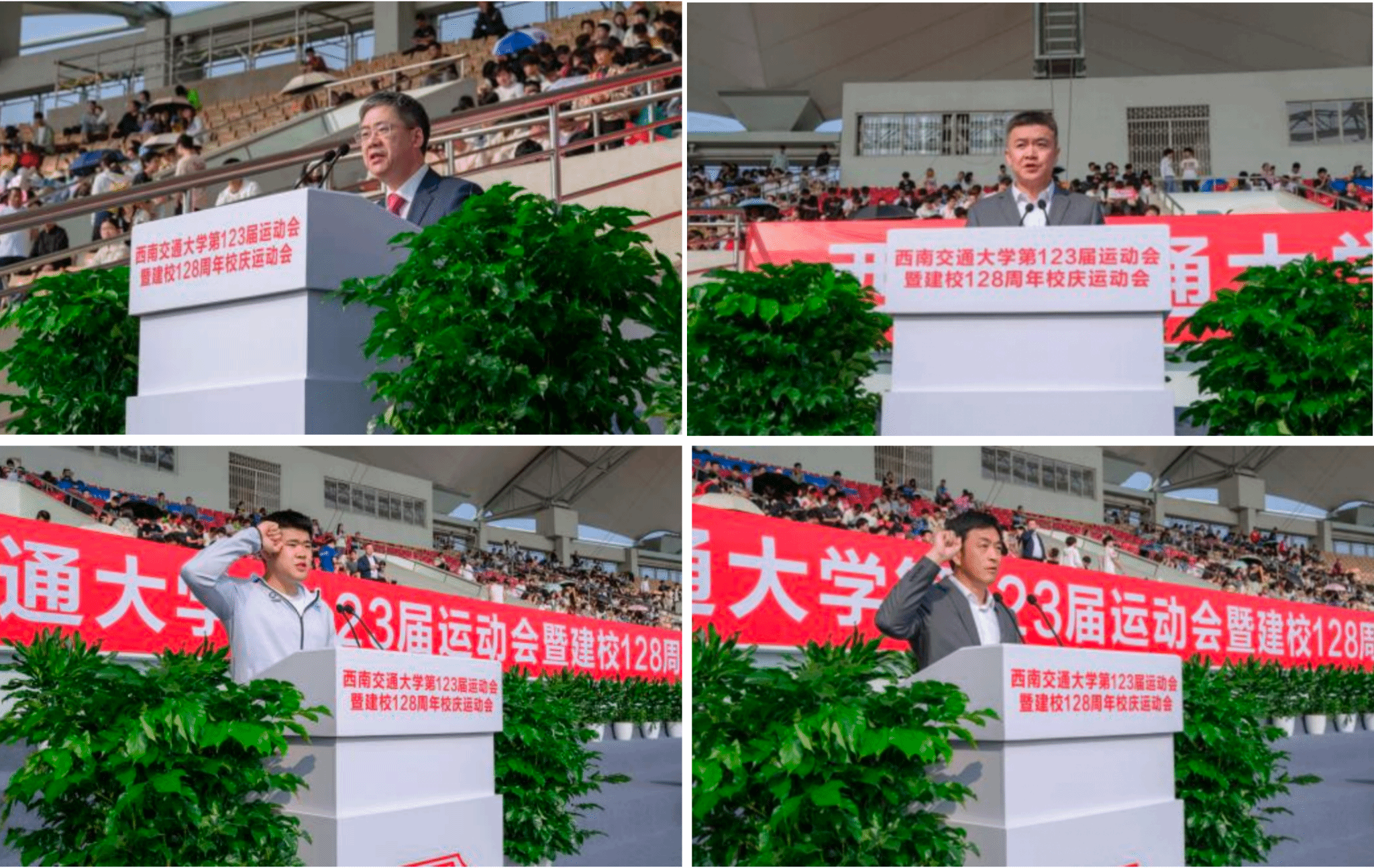 第123届运动会暨建校128周年校庆运动会在犀浦校区北区体育场举行。学校党委书记余敏明,党委副书记杨爱华、高平平,党委常委、副校长康国政、何正友,党委常委、宣传部部长卢世炬出席开幕式。