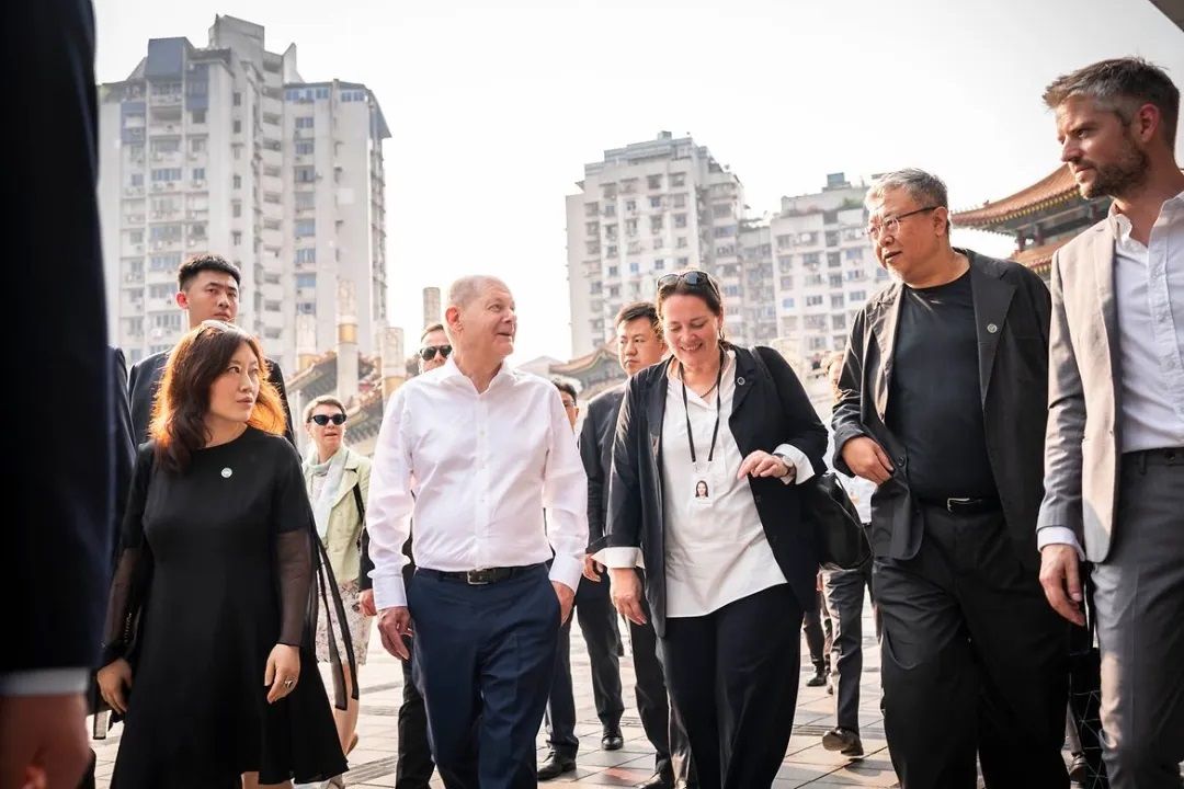 4月14日,德国总理朔尔茨抵达重庆,展开访华之旅。这是朔尔茨自就任总理以来第二次访华。西南交大建筑学院张恒老师受邀陪同朔尔茨及代表团进行了深度了解重庆的“城市漫步”之旅,近距离感受中国城市的发展脉搏。在半个小时的城市漫步中,张恒老师向朔尔茨先生介绍了“成渝双城经济圈”的发展情况,回答了朔尔茨先生感兴趣的一些有关建筑和民生问题,并邀请朔尔茨及代表团下次访问中国历史文化名城、美丽的公园城市、天府之国——成都。