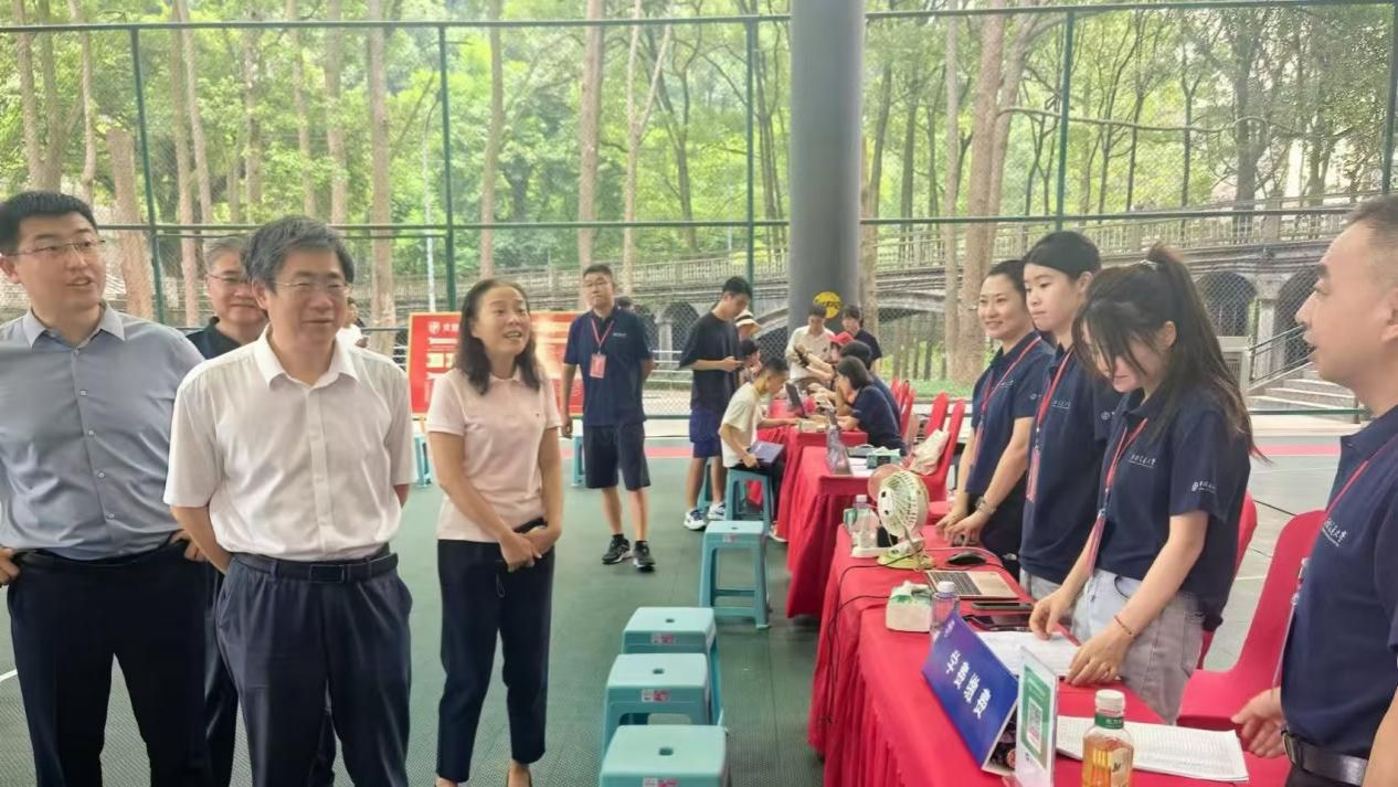 学校设立学院集中接待点,统一布置房伞、桌椅、标识横幅等,配置照明设备、无线网络、应急通信5G车、防暑降温设备、免费摆渡车等,做好迎新保障工作。此外,校园迎新通道东西两侧均设立家长休息区,并免费提供饮用水及冷饮。