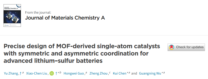 大规模电化学储能创新团队最新研究成果“Precise design of MOF-derived single-atom catalysts with symmetric and asymmetric coordination for advanced lithium-sulfur batteries”,论文第一完成单位是Meehutao